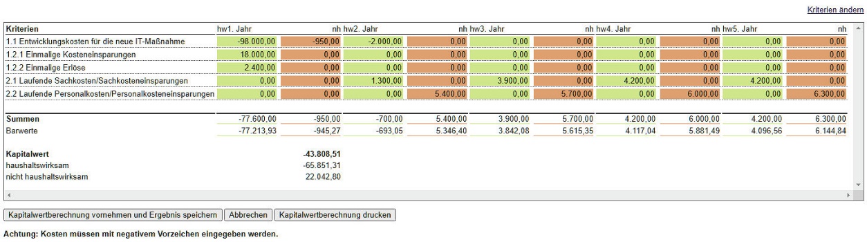 Enterprise | Kapitalwertberechnung | Frei definierbare Kapitalwertberechnungen |