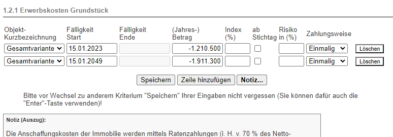 2 Wenn bei jährlicher Zahlungsweise das letzte Jahr als Folge der Start- und Ende-Fälligkeiten weniger als 12 Monate enthält, setzt WiBe Bau dort den Jahresbetrag monatlich anteilig gekürzt in die Berechnung ein.