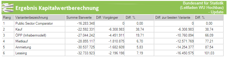 3 In der Bildschirm- und Druckdarstellung wird der Risikozuschlag-Prozentsatz dargestellt, auch wenn er nicht in die Berechnung eingeht: dessen Höhe ergänzt die Einschätzung, inwieweit diese Kostenvariation die Entscheidung beeinflussen sollte.