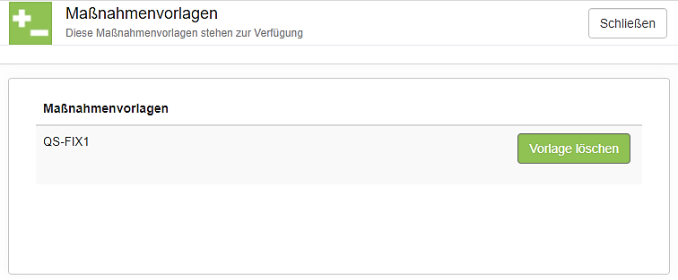 Wie Sie Vorlagen erstellen und zur Verfügung stellen können, ist im Menü "Maßnahmen / Maßnahmenverwaltung" beschrieben. Ein Beispiel für die Liste der verfügbaren Vorlagen sehen Sie hier: