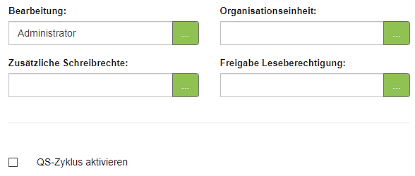 In den Auswahlfeldern rechts können Sie Bearbeiter und Organisationseinheit sowie zusätzliche Schreib- und Leserechte für diese Maßnahme vergeben.