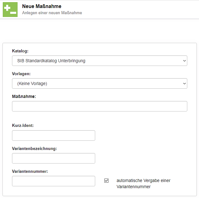 Maßnahmen (Menü) | Neue Maßnahme | Neue SIB Maßnahme anlegen |