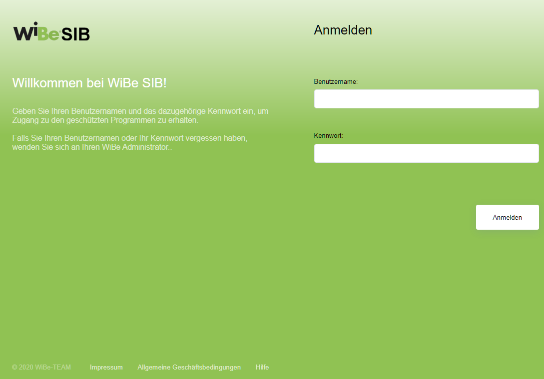 Benutzername und Kennwort erhalten Sie von Ihrer WiBe SIB Administration.