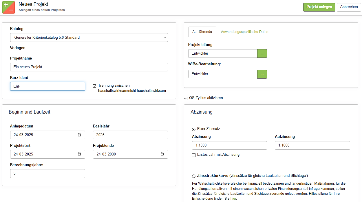 Projekte (Menü) | Neues Projekt | Neues WiBe-Projekt anlegen |
