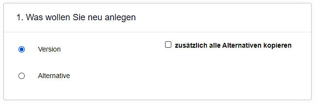 Alternativen: standardmäßig ist lediglich eine fortlaufende Nummer enthalten. Die Beschriftung der Alternativen können Sie ändern, indem Sie den Text im Feld überschreiben oder ergänzen.