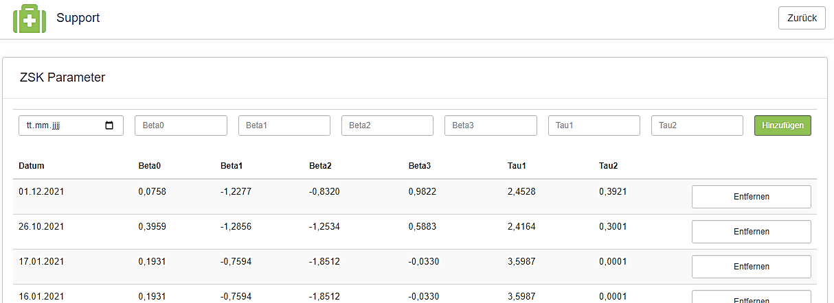 Bitte beachten Sie unbedingt, dass falsche Eingaben an dieser Stelle unmittelbar falsche Berechnungen bei allen Maßnahmen zur Folge haben, bei denen die Zinsstrukturkurve mit dem betreffenden Stichtag verwendet wird.